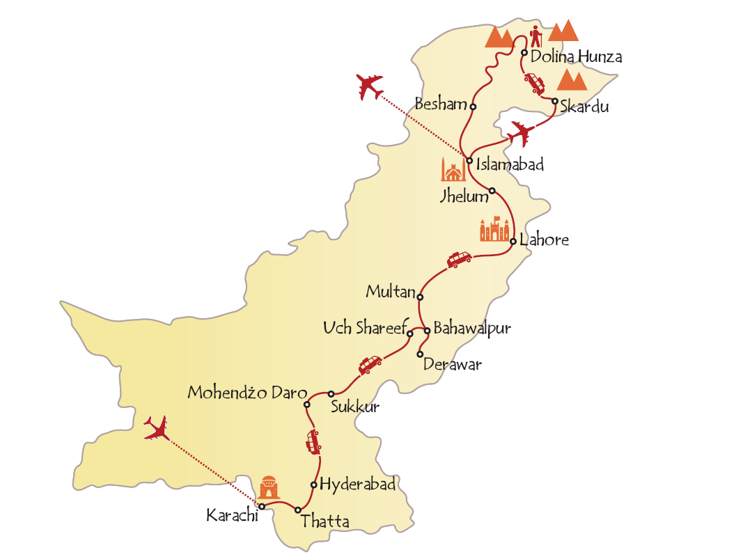 - kompleksowa podróż przez południowy i północny Pakistan ze spektakularną doliną Hunza,